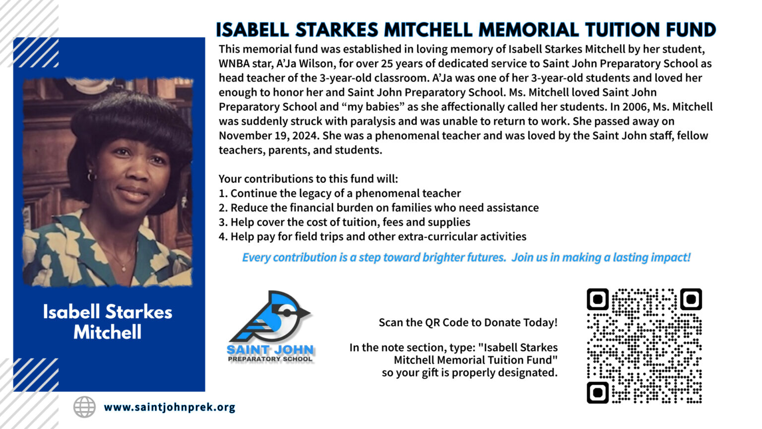 - Isabell Starkes Mitchell Memorial Tuition Fund (See Below)